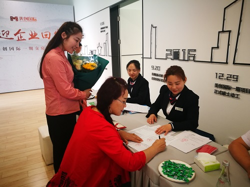 在開發(fā)公司負(fù)責(zé)人的陪同下,王總認(rèn)真審閱并簽署了房屋交驗(yàn)和物業(yè)管理等相關(guān)文件。