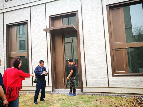 仔細(xì)對(duì)水電、門窗等設(shè)施查驗(yàn),并對(duì)有關(guān)部位進(jìn)行閉水試驗(yàn)。記錄存在問題,交項(xiàng)目部抓緊修復(fù)。