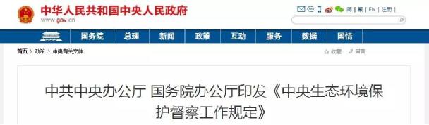 近日,中共中央辦公廳、國(guó)務(wù)院辦公廳印發(fā)的《中央生態(tài)環(huán)境保護(hù)督察工作規(guī)定》。